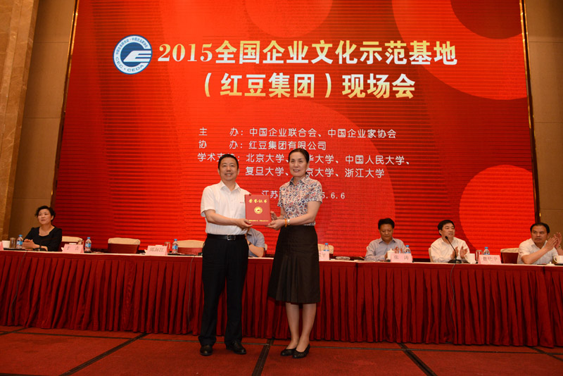 6月6日,在無(wú)錫市紅豆杉莊舉辦的2015全國(guó)企業(yè)文化示范基地(紅豆集團(tuán))現(xiàn)場(chǎng)會(huì)上,紅豆集團(tuán)被中國(guó)企業(yè)聯(lián)合會(huì)、中國(guó)企業(yè)家協(xié)會(huì)授予“全國(guó)企業(yè)