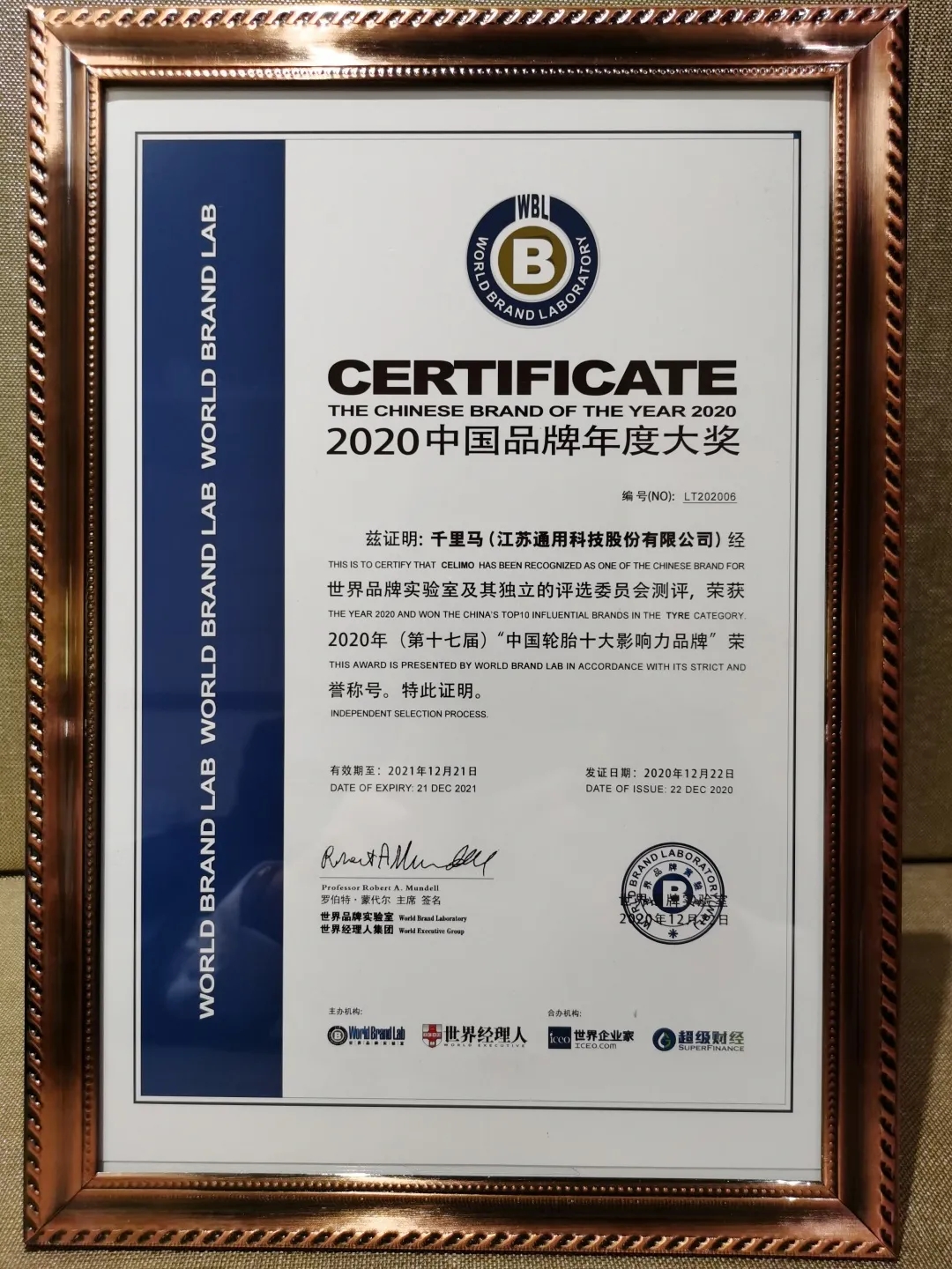 12月22日,由世界品牌實(shí)驗(yàn)室主辦的2020中國品牌年度大獎(jiǎng)評(píng)選在北京隆重舉行,會(huì)上正式揭曉中國輪胎品牌榜。千里馬輪胎憑借強(qiáng)大的品牌