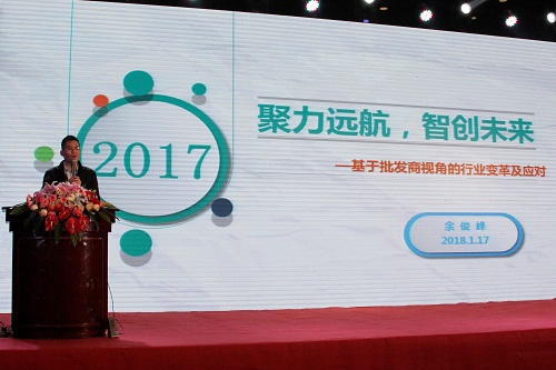 四川鑫蜀通輪胎有限公司總經(jīng)理余俊峰在大會上分享了“基于批發(fā)商視角的行業(yè)變革及應對”觀點。2017年,鑫蜀通在“不只埋頭拉車,更要抬頭看路”、“錘煉內(nèi)功,鍛造軟實力”、“緊跟通用發(fā)展步伐,凝心聚力”這三個層面上辛勤開拓,積極應對行業(yè)變革,不斷探索創(chuàng)新發(fā)展機遇,創(chuàng)造了屬于他自己的輝煌。