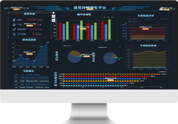 “十四五”是碳達峰的關鍵期、窗口期,通過數(shù)字化建設,可在節(jié)能、降耗、減排、污染監(jiān)管等領域利用數(shù)字化、智能化技術實現(xiàn)行業(yè)數(shù)字化轉型,從而實現(xiàn)數(shù)據(jù)采集到數(shù)據(jù)應用的全生命周期管理,加強行業(yè)大數(shù)據(jù)整合共享和應用能力??梢哉f企業(yè)的數(shù)字化轉型升級,就是在為低碳化戰(zhàn)略賦能。碳中和是數(shù)字化轉型的核心力,數(shù)字化是低碳化戰(zhàn)略驅動力。據(jù)了解,通用股份碳云平臺通過工業(yè)互聯(lián)等技術,將全面采集、評估分析工廠使用的電力、蒸汽、燃氣、水務等各類數(shù)據(jù),利用碳監(jiān)測算法生成能源碳排熱力圖,指導車間、設備、班組持續(xù)開展節(jié)能工作,從而節(jié)約資源和減少能源消耗,實現(xiàn)“一屏觀全局”,即使通過手機app也可實時便捷掌控。