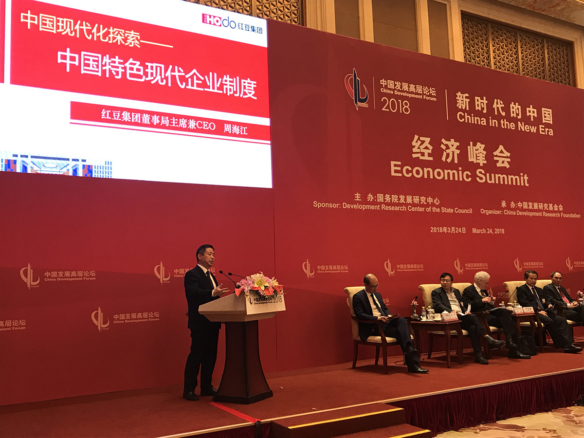 “中國共產(chǎn)黨與中國現(xiàn)代化”分組會是本次論壇的亮點之一,由人民網(wǎng)總裁葉蓁蓁主持,中央黨史和文獻研究院院務(wù)委員陳晉、劍橋大學(xué)教授彼得•諾蘭、新加坡國立大學(xué)教授鄭永年、紅豆集團董事局主席兼CEO周海江等領(lǐng)導(dǎo)專家作了交流發(fā)言。周海江結(jié)合紅豆集團多年來探索實踐的《中國特色現(xiàn)代企業(yè)制度》,與中外嘉賓分享了企業(yè)黨建與中國現(xiàn)代化的關(guān)系。