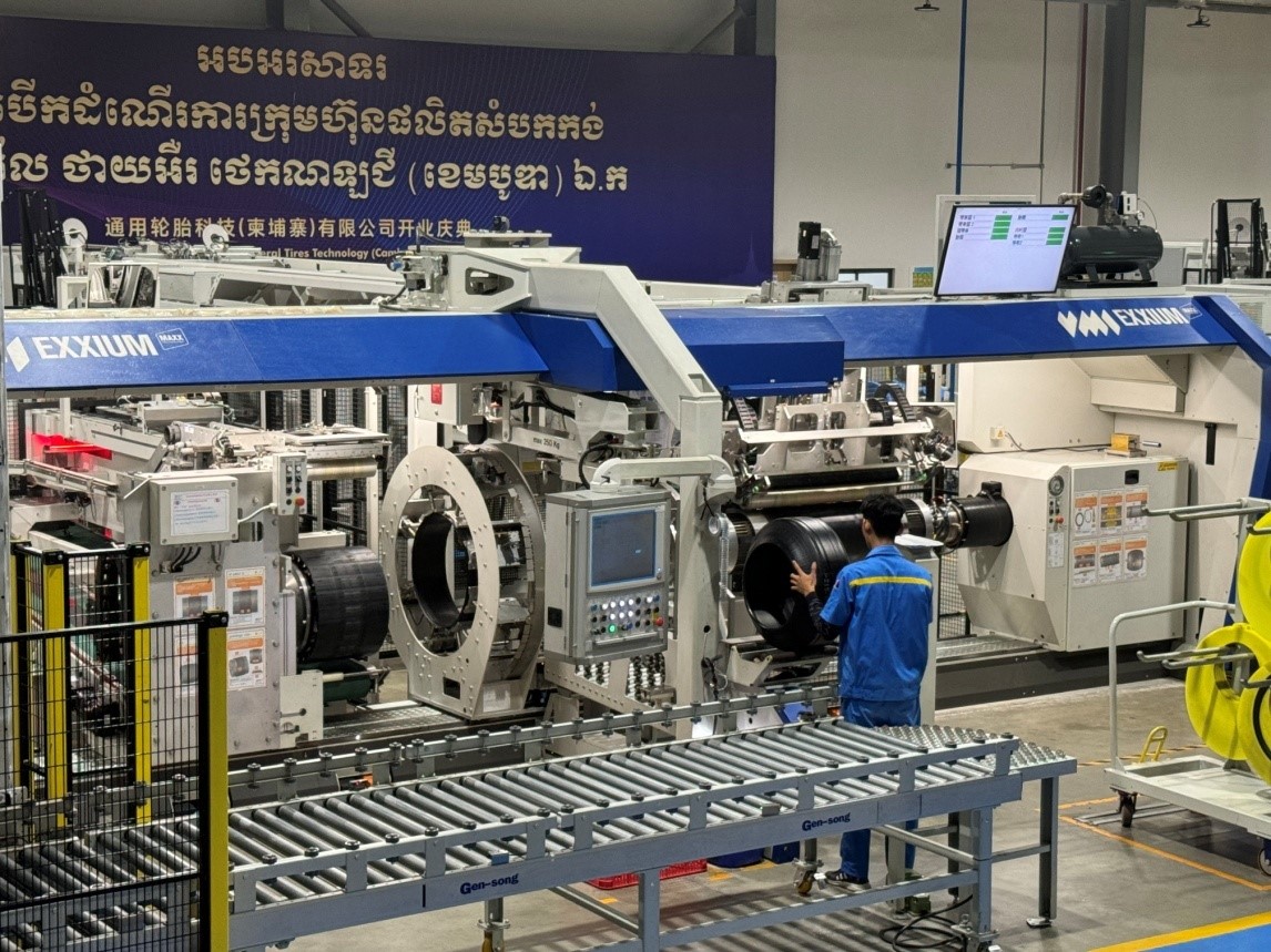 走進(jìn)通用輪胎科技(柬埔寨)有限公司,目之所及都是智能化的生產(chǎn)設(shè)備,工廠內(nèi)建有13個(gè)立體智能倉庫,91個(gè)機(jī)器人。令人驚嘆的是,從半部件到一條20寸的輪胎成型,僅需33秒的時(shí)間就完成了。該工廠自2023年5月正式開業(yè)以來,以打造智能化、自動(dòng)化、信息化的現(xiàn)代化工廠為目標(biāo),推進(jìn)智能制造和精益制造,僅一年時(shí)間,一期項(xiàng)目就實(shí)現(xiàn)了全面達(dá)產(chǎn)。如今,正在加快推進(jìn)二期項(xiàng)目建設(shè),一期、二期全部達(dá)產(chǎn)后,將具備年產(chǎn)850萬條半鋼子午胎和165萬條全鋼子午胎的生產(chǎn)能力。