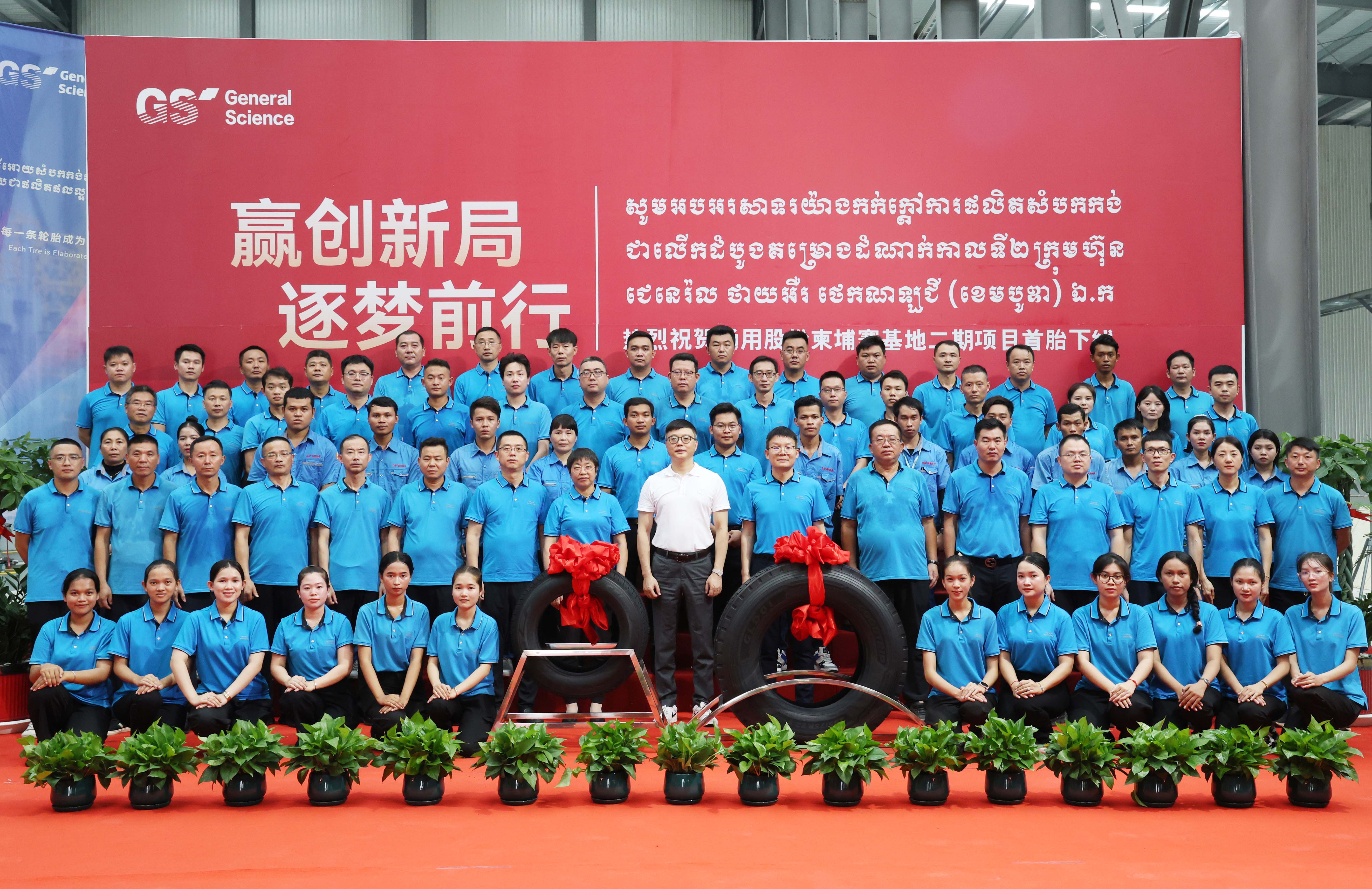 8月28日,通用股份柬埔寨基地二期項目首胎成功下線。通用股份董事長顧萃、海外公司總經(jīng)理顧亞紅等領(lǐng)導(dǎo)及柬埔寨全體員工共同見證通用股