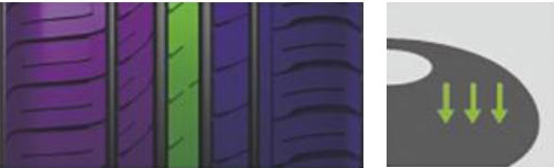 胎面非對(duì)稱(chēng)的花紋設(shè)計(jì),既確保了優(yōu)異的彎道抓著力又分散了轉(zhuǎn)向時(shí)產(chǎn)生的接地壓力。